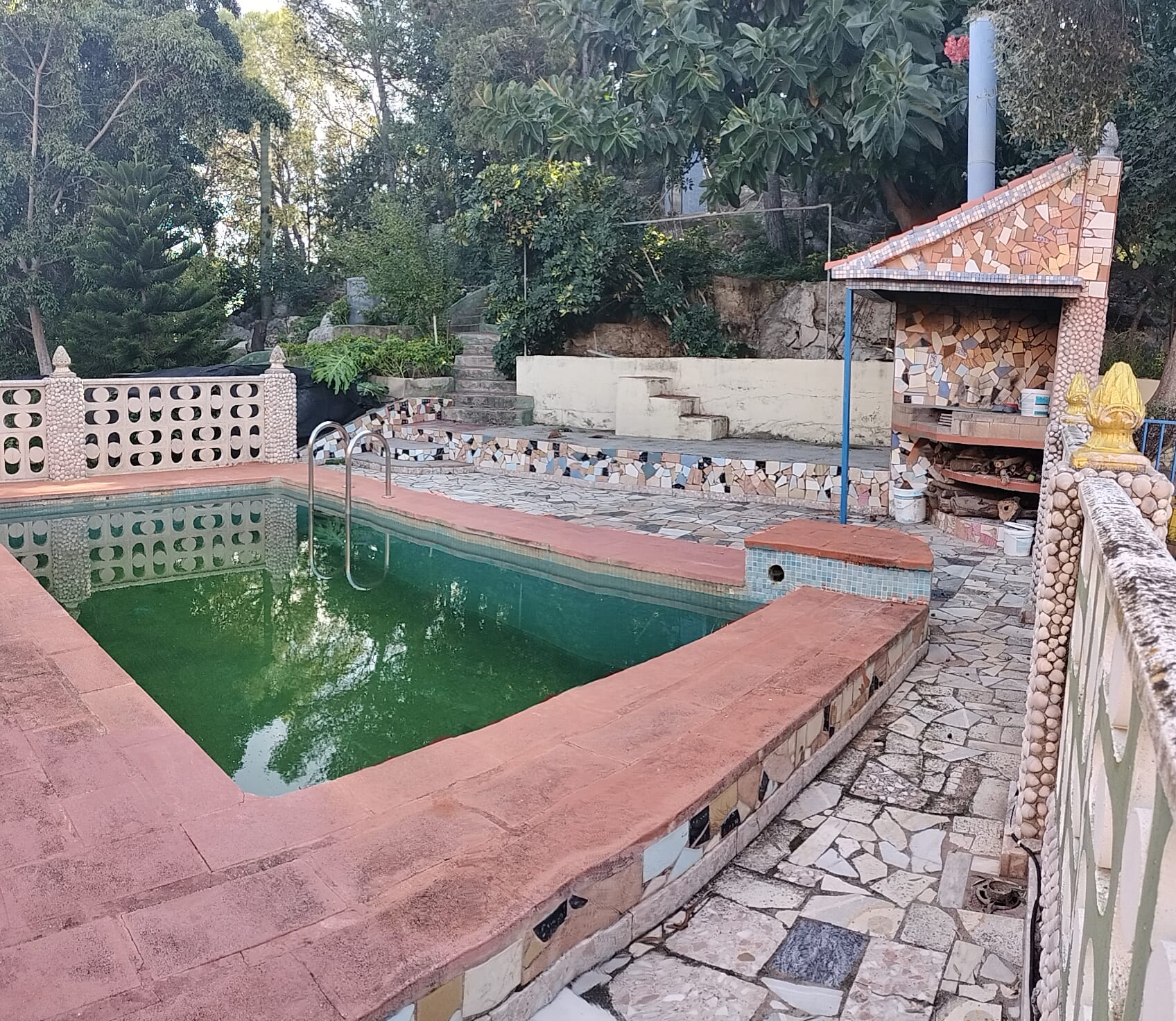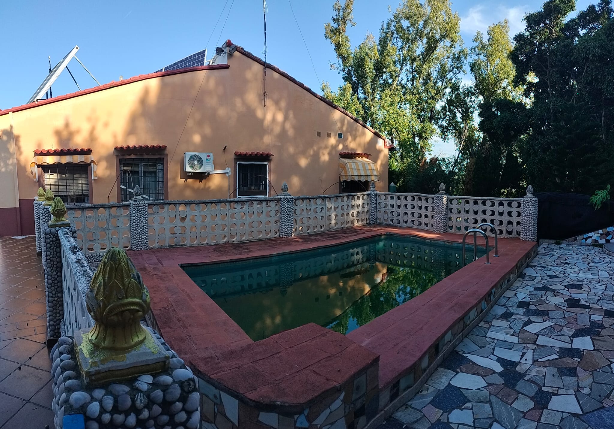 La propiedad cuenta con dos viviendas completas de dos alturas, cada una con su propia piscina independiente. La primera casa ofrece cinco habitaciones y tres baños, mientras que la segunda tiene tres habitaciones y dos baños, ambas equipadas con cocinas y salones-comedores acogedores. Además, ambas viviendas son autosuficientes en consumo de energía gracias a sus baterías y acumuladores con placas solares.